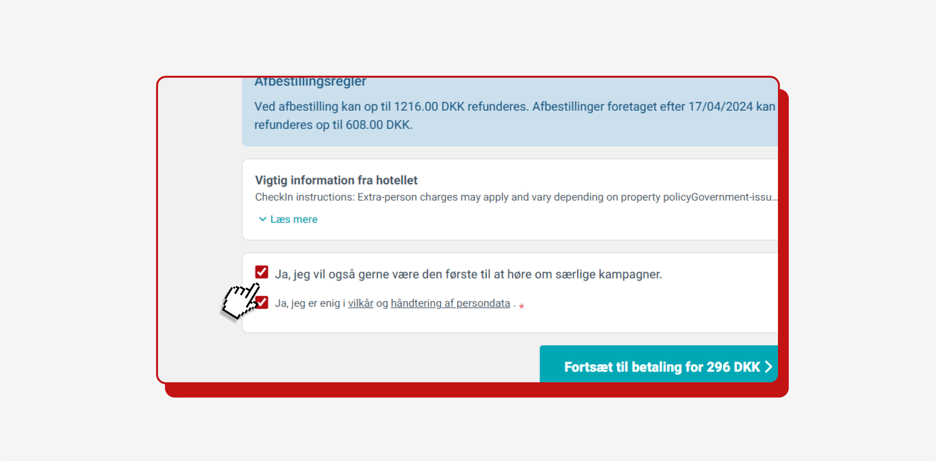 4. Du skal acceptere betingelserne, før du foretager betalingen.